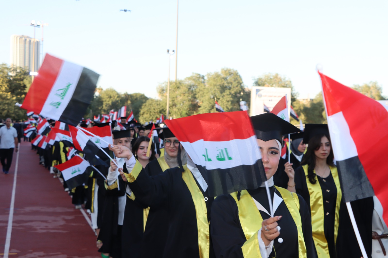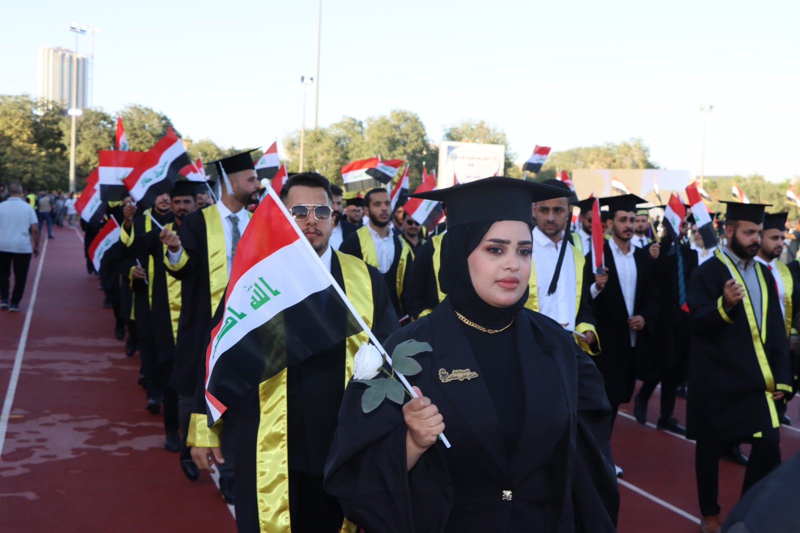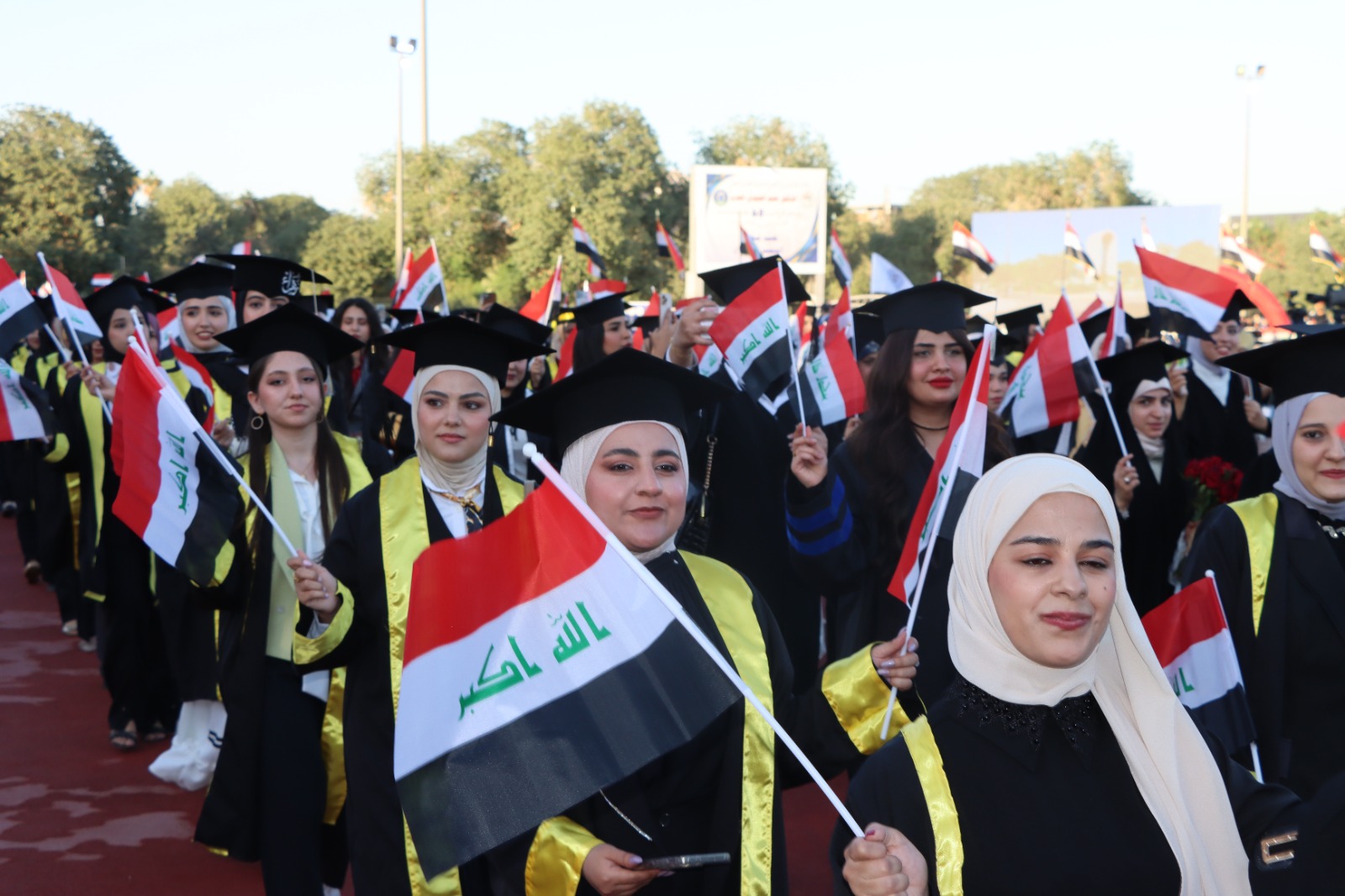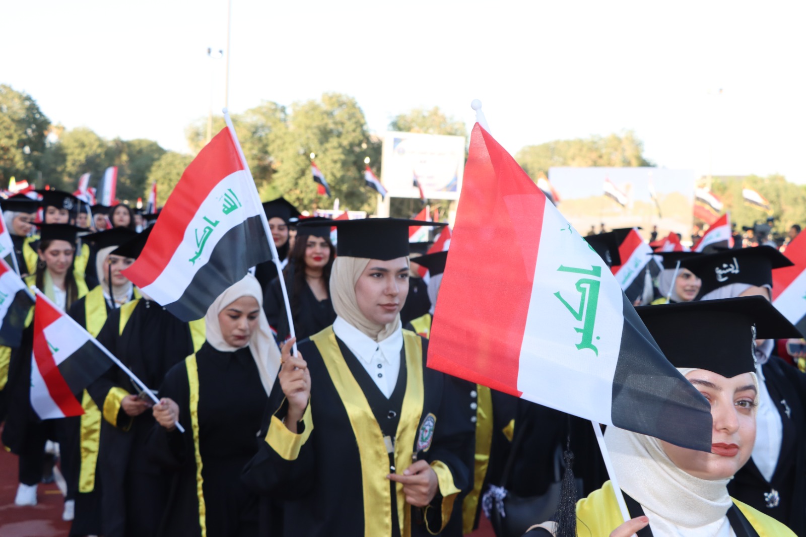 أقيم حفل التخرج المركزي للدورة 68 لخريجي جامعة بغداد للعام الدراسي 2024-2025 (دورة التميز والإبداع) على حدائق كلية التربية البدنية وعلوم الرياضة في الجامعة برعاية السيد رئيس جامعة بغداد الأستاذ الدكتور بهاء ابراهيم انصاف المحترم، وبحضور السيد معالي وزير التعليم العالي و البحث العلمي الدكتور نعيم العبودي المحترم. وقد حضر الحفل السيد عميد الكلية الأستاذ الدكتور سرمد هاشم الخطيب المحترم برفقة السيد معاون العميد للشؤون العلمية الأستاذ الدكتور مناف هاشم عبد الرزاق المحترم و نخبة من تدريسيي الكلية. تضمن الحفل عدة فقرات وأهمها تكريم الطلبة الأوائل من قبل معالي الوزير، وإمتاز الحفل بالمستوى التنظيمي العالي والمتميز. وحرص طلبتنا خريجو دورة 68 على التواجد في الحفل وسط فرحة عوائلهم. وبختام الحفل أشاد السيد العميد بحرص طلبتنا على التواجد متمنياً لهم حياة مهنية مكلَّلة بالنجاح و التميز.