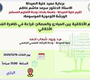 تدريسي في كلية الصيدلة – جامعة بغداد يشارك كمشرف ثانٍ لطالب دكتوراه في جامعة ماليزية مرموقةCopharm03/12/2025
