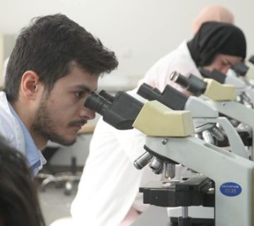 طلبة كلية الصيدلة أثناء أداء التجارب العملية ضمن بيئة تدريبية حديثة ومتكاملة