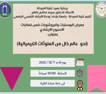 كلية الصيدلة تشارك العالم احياء اليوم الدولي للقضاء على الفقرCopharm17/10/2025يحتفي العالم في 17 تشرين الأول من كل عام بـ اليوم الدولي للقضاء على الفقر، تأكيدًا ... المزيد