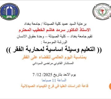 كلية الصيدلة تشارك العالم احياء اليوم الدولي للقضاء على الفقرCopharm17/10/2025يحتفي العالم في 17 تشرين الأول من كل عام بـ اليوم الدولي للقضاء على الفقر، تأكيدًا ... المزيد