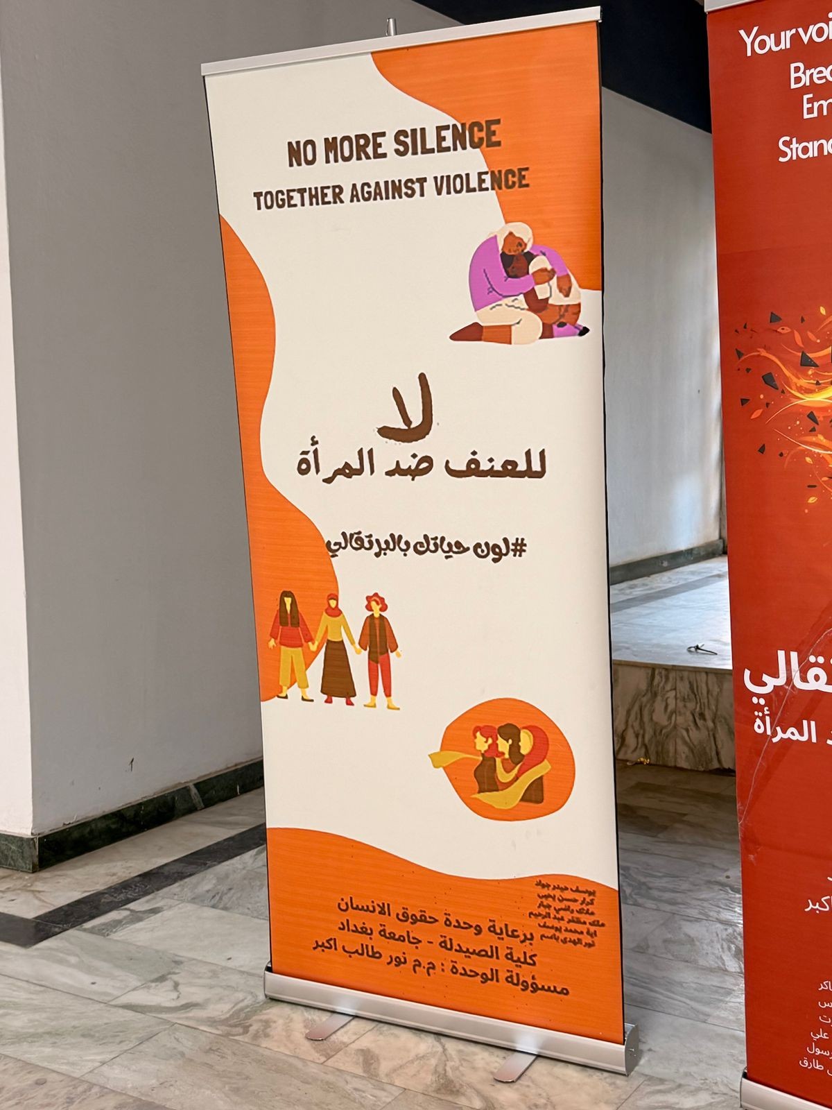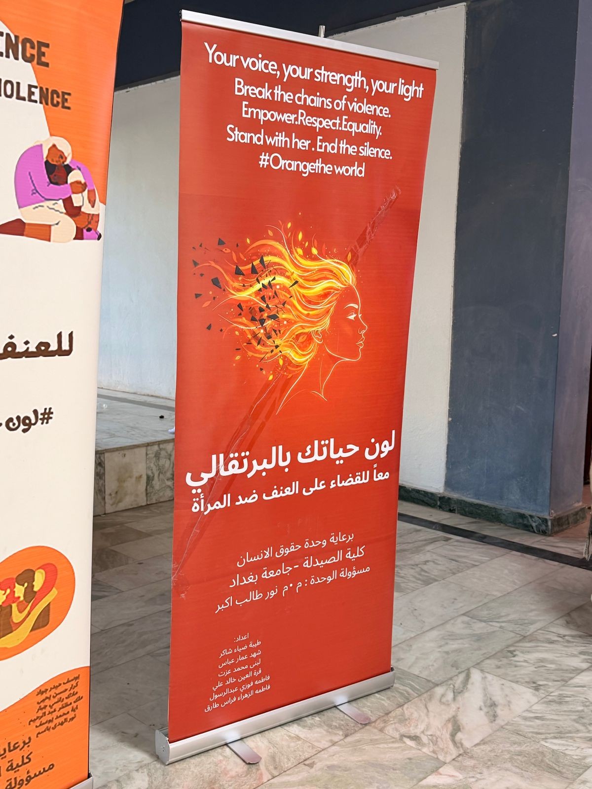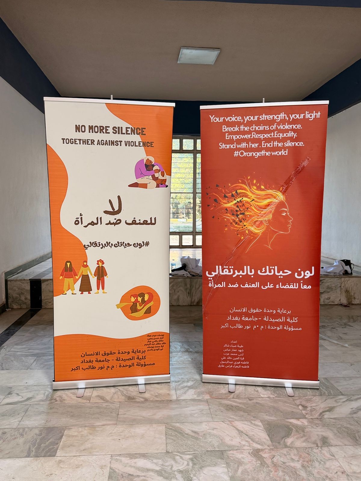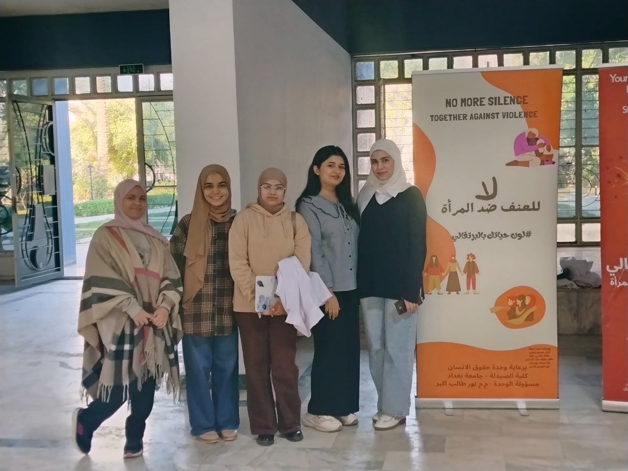 برعاية السيد عميد كلية الصيدلة، الأستاذ الدكتور سرمد هاشم الخطيب المحترم، أقامت وحدة حقوق الإنسان في كلية الصيدلة/جامعة بغداد نشاط توعوي بعنوان “لون حياتك بالبرتقالي بمناسبة اليوم العالمي للقضاء على العنف ضد المرآة ”، في باحة عمادة كلية الصيدلة وشارك في النشاط مجموعة من طلبة المرحلة الثانية، بإشراف مسؤولة الوحدة، المدرس المساعد نور طالب أكبر. هدف النشاط إلى نشر الوعي بخطورة العنف ضد المرأة وتشجيع المجتمع على دعم النساء وتبنّي ثقافة إحترام وحماية المرأة، من خلال إستخدام اللون البرتقالي كرمز للأمل ومستقبل خالٍ من العنف. وتضمّن النشاط عرض بوسترات توعوية ومناقشة عدد من الموضوعات المتعلقة بفهم ، وسبل دعمهم داخل الحرم الجامعي، وتم التحدث عن معنى اللون البرتقالي ورمزيته في حملات مناهضة العنف ضد المرأة باعتباره رمزًا للأمل والتفاؤل. ومناقشة أنواع العنف التي قد تتعرض لها المرأة. و تبادل آراء المشاركين حول أسباب انتشار العنف وطرق الحدّ منه داخل المجتمع. وأختتم النشاط بالتأكيد على دور المؤسسات التعليمية والأسرة في دعم المرأة وتعزيز ثقافة الإحترام وعدم التمييز.