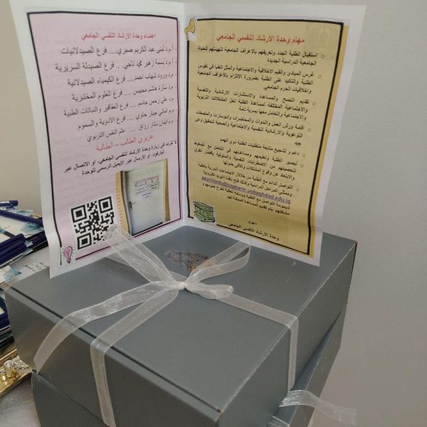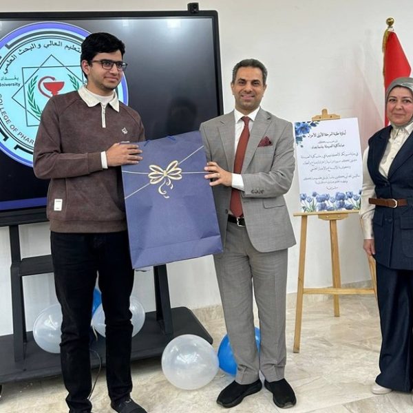 بإشراف السيد عميد كلية الصيدلة الأستاذ الدكتور سرمد هاشم الخطيب المحترم، وبحضور السيدين معاوني العميد أ.د مناف هاشم عبد الرزاق أ.د شهاب حطاب مطلك و عدد من السادة رؤساء الفروع العلمية و التدريسيين الأفاضل ، أقامت وحدة الإرشاد النفسي الجامعي بالتعاون مع شعبة الإعلام والإتصال الحكومي ووحدة العمل التطوعي، حفلاً لإستقبال طلبة المرحلة الأولى للعام الدراسي 2025-2026 وذلك يوم الخميس المصادف 4 / 12/ 2025م في رحاب قاعة القدس في الكلية. بدأ الحفل بالنشيد الوطني و تلاوة آيات عطرة من القران الكريم ألقاها طالب المرحاة الثالثة علي محمد حميد، قراءة سورة الفاتحة على أرواح شهدائنا الأبرار، ثم بدأت مراسم الحفل بترحيب للطلبة و تحية للحضور من قبل السيدة مسؤول شعبة الإعلام و الإتصال الحكومي م. ميس فاضل محمد وعرض فيديو تعريفي عن الكلية. ثم ألقى السيد عميد الكلية كلمته للترحيب بطلبة كليتنا الجدد، مهنئاً إياهم ببداية العام الدراسي الجديد، متمنياً لهم دوام الموفقية والنجاح، مع ذكر العديد من أسرار التميز في مشوارهم الأكاديمي القادم و الإلتزام بقواعد الحياة الجامعية من ناحية العلم و المهارات والسلوك . كما قام السيد المعاون العلمي للشؤون العلمية والطلبة ،أ.د مناف هاشم عبد الرزاق، بتعريف الطلبة بواجباتهم وحقوقهم وضرورة الإلتزام بالدوام وتعليمات عمادة الكلية، متمنياً لهم عاماً دراسياً ناجحاً. وتضمن الحفل إلقاء عدد من المحاضرات التعليمية والتوعوية عن مواضيع متعددة منها “لمحات عن تاريخ الصيدلة في بلاد الرافدين” و”تعريف عن وحدة الإرشاد النفسي الجامعي والحياة الجامعية” وأخيراً عن “قوانين الحرم الجامعي والسلوك الطلابي”، قام بإلقائها كل من السيدة مسؤول وحدة الإرشاد النفسي الجامعي أ.م.د لبنى عبد الكريم و عضو الوحدة أ.م.د بسمة زهير محمد. وأختتم الحفل بتكريم السيد عميد الكلية، تقديرًا لجهوده الكبيرة ودعمه المستمر في الإرتقاء بالمستوى العلمي للطلبة، وإقامة مسابقة للطلبة وتم توزيع عدد من الجوائز على الفائزين.