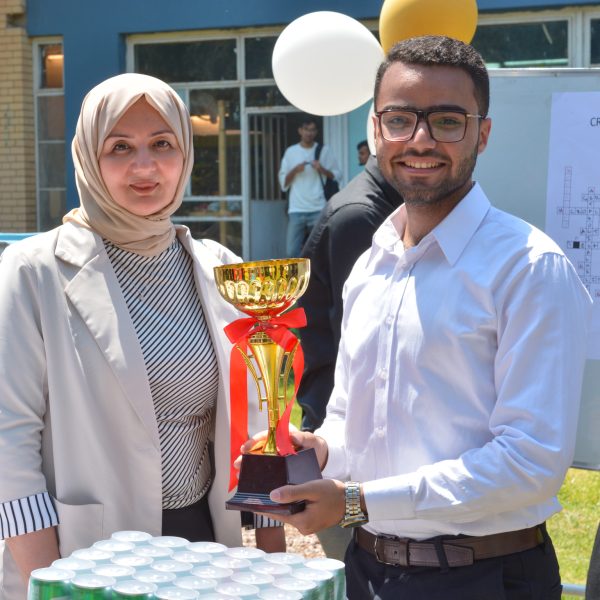 بإشراف السيد عميد كلية الصيدلة الأستاذ الدكتور سرمد هاشم الخطيب المحترم، أقامت وحدة النشاط الطلابي نشاطا ترفيهيا مميزا بعنوان “لغز الكلمات العلمية المتقاطعة” يوم الخميس المصادف 17/4/2025 كانت المسابقة تنافسية بين مجموعتين من طلبة المرحلة الخامسة بأشراف مجموعة من التدريسيين في فرع العلوم المختبرية السريرية. تمحورت المسابقة حول حل لغز الكلمات العلمية المتقاطعة. وقد أظهر الطلبة حماسا كبيرا وروحا عالية من التعاون والعمل الجماعي أثناء المسابقة التي هدفت الى تعزيز المعلومات العلمية بطريقة مبتكرة وممتعة .وفي ختام الفعالية، تم توزيع كؤوس تقديرية على الفريقين تكريما لجهودهم ومشاركتهم الفاعلة وسط أجواء من الفرح والتشجيع. وقد أثنى القائمون على النشاط على الأداء المميز للطلبة، مؤكدين أهمية دمج الأساليب الترفيهية في دعم المسيرة العلمية.الأساتذة المشاركون في هذه المسابقة هم : أ.م.د علي عبد الحسين, م.د شيماء عبد الزهرة ، أ.م سهير حسن، م.د خالد عبد الحسين و م. إيمان صادق