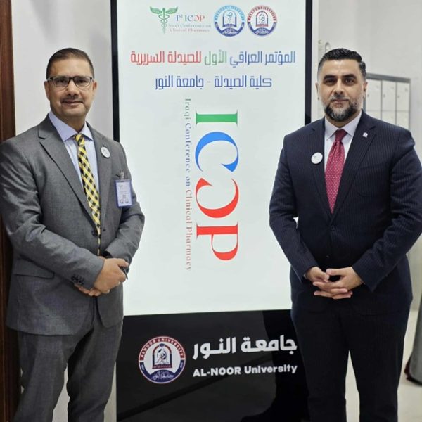 شارك الأستاذ المساعد الدكتور سامر عماد محمد، رئيس فرع الصيدلة السريرية، والأستاذ المساعد الدكتور علي عزيز علي، التدريسي في الفرع ذاته، كمتحدثين رئيسيين في المؤتمر الأول للصيدلة السريرية الذي نظمته وإستضافته كلية الصيدلة/ جامعة النور بتاريخ 4-5 تشرين الأول 2025، في محافظة نينوى.