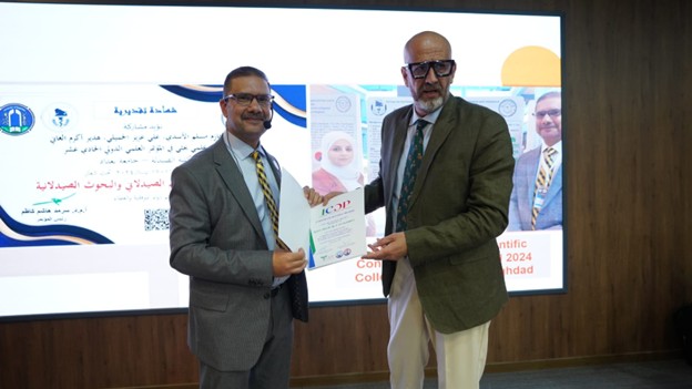 قدم الدكتور سامر عماد محاضرة علمية تناولت برنامج الفارم دي (PharmD) في العراق، بوصفه تجربة تعليمية رائدة تتبناها كليتا الصيدلة في جامعة بغداد وجامعة إبن حيان. وأوضح أن كلية الصيدلة/ جامعة بغداد تستقبل سنوياً 25 طالباً من المتفوقين ضمن هذا البرنامج، حيث يخضعون لمنهاج مختلف عن البكالوريوس بدءاً من السنة الثالثة والرابعة، يتبعها تدريب سريري مكثف لمدة عام في مستشفيات مدينة الطب.