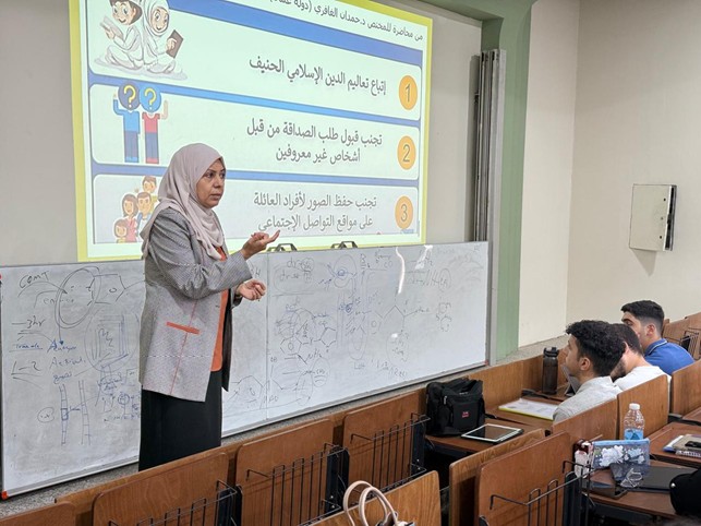 هدفت الندوة الى توعية الطلبة بمفهوم الإبتزاز الإلكتروني، وأشكاله وكيفية التعامل معه، وبيان الطرق الصحيحة للوقاية منه، بما يسهم في حماية الطلبة من الوقوع ضحايا لهذا النوع من الجرائم.