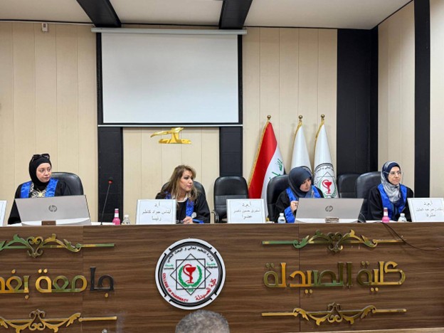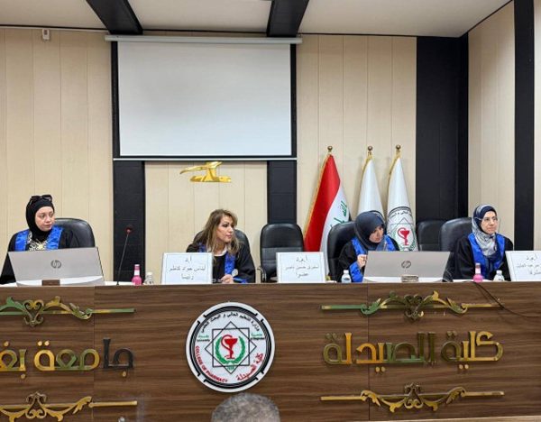 ناقشت كلية الصيدلة رسالة الماجستير الموسومة “التحري الكيميائي لنبات ورد النيل العراقي عائلة البونتدريسيات وتقييم تاثيره السمي”، للطالبة سرى حامد عبد ومشرفتها الأستاذ المساعد الدكتور ذكاء زهير عبد الجليل في فرع العقاقير والنباتات الطبية.