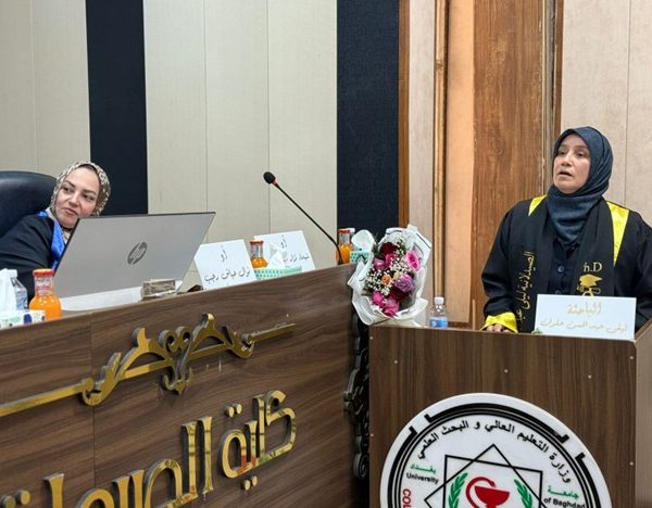 ناقشت كلية الصيدلة إطروحة الدكتوراه الموسومة “الأناستروزول كلصقة عبر الجلد باستخدام السبانلاستيك: التحضير ودراسة في المختبر وفي الجسم الحي”، للطالبة ليلى عبد الحسين علوان ومشرفتها الأستاذ الدكتور شيماء نزار عبد الحميد في فرع الصيدلانيات.