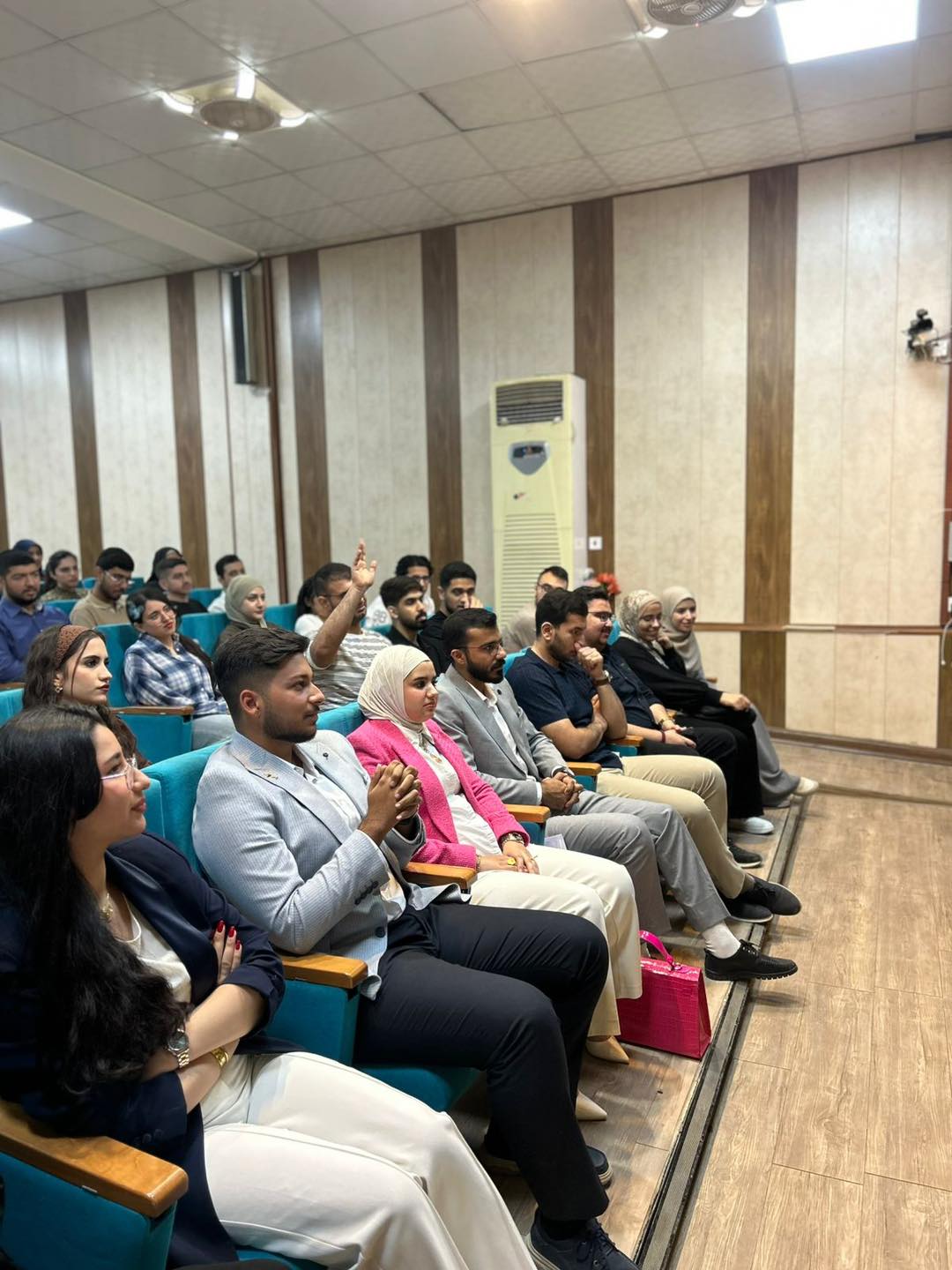 إجتمع السيد العميد، الأستاذ الدكتور سرمد هاشم الخطيب المحترم، بطلبة المراحل الثالثة والرابعة، وبحضور السيد معاون العميد للشؤون العلمية، الأستاذ الدكتور مناف هاشم عبد الرزاق، والسيدة مسؤولة شعبة ضمان الجودة، الأستاذ المساعد الدكتورة كوثرخالد أحمد.