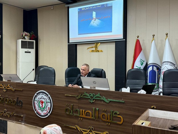 استقبل كل من السيد العميد، الأستاذ الدكتور سرمد هاشم الخطيب المحترم، ومعاون العميد للشؤون الإدارية، الأستاذ الدكتور شهاب حطاب مطلك المحترم، مدير اقدم دائرة الإعلام والاتصال الجماهيري / المفوضية العليا المستقلة للانتخابات، م. ماجد صالح مهدي، لغرض إقامة ندوة تعريفية تثقيفية بالتعاون مع قسم الإعلام والاتصال الحكومي في جامعة بغداد، والمفوضية العليا المستقلة للانتخابات، وذلك يوم الأحد الموافق ٢ تشرين الثاني ٢٠٢٥.
