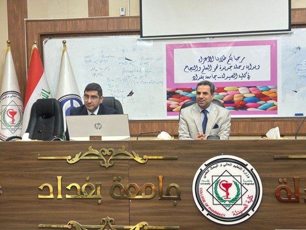 إجتمع السيد عميد كلية الصيدلة، الأستاذ الدكتور سرمد هاشم الخطيب المحترم، بطلبة المرحلة الخامسة، وبحضور السيد معاون العميد للشؤون العلمية، الأستاذ الدكتور مناف هاشم عبد الرزاق المحترم.