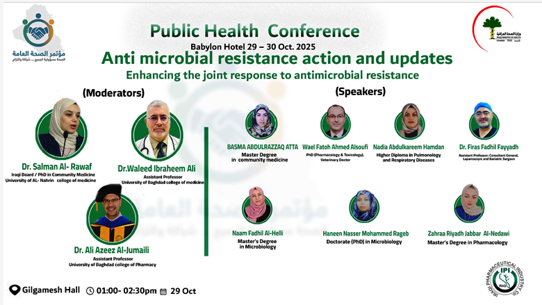 شهد مؤتمر الصحة العامة حضور معالي وزير الصحة، مدير عام دائرة الصحة العامة إلى جانب نخبة من الأطباء والصيادلة من مختلف محافظات العراق.