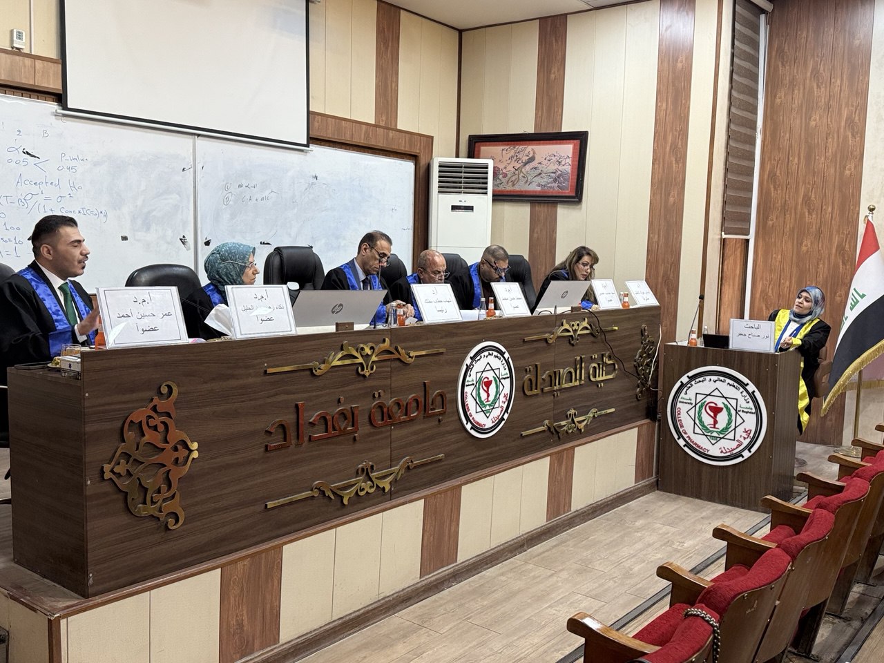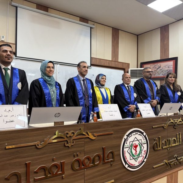 ناقشت كلية الصيدلة إطروحة الدكتوراه الموسومة “تقييم المكونات الكيمائية النباتية والتأثير السام للخلايا لمستخلصات الأجزاء الهوائية من نبات عرف الديك البري (العائلة القطيفية) في العراق” للطالبة نور صباح جعفر ومشرفتها الأستاذ الدكتور ايناس جواد كاظم في فرع العقاقير والنباتات الطبية