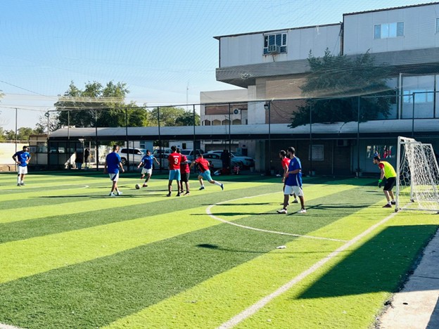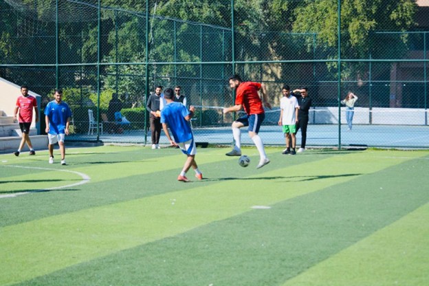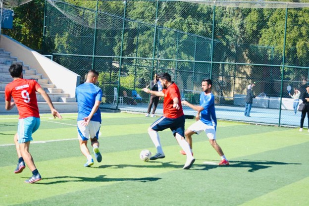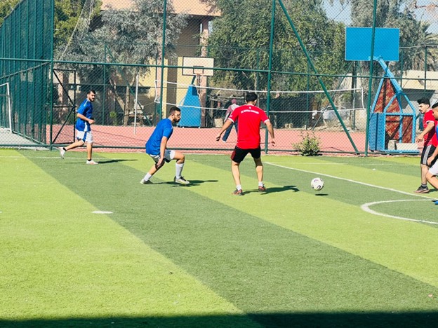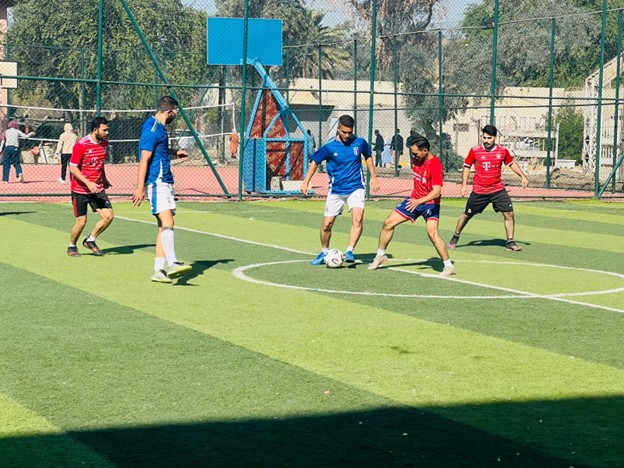 برعاية السيد عميد كلية الصيدلة، الأستاذ الدكتور سرمد هاشم الخطيب المحترم، إنطلقت يوم الأربعاء الموافق 3/12/2025 بطولة خماسي كرة القدم على ملعب الكلية، والتي نظّمتها شعبة النشاطات الطلابية في كلية الصيدلة بمشاركة واسعة من طلبة المراحل الدراسية وخريجي الكلية.وجاء تنظيم هذه البطولة بهدف تنمية مهارات الطلبة الرياضية، وتعزيز التواصل بينهم ضمن أجواء جامعية ترفيهية تُسهم في نشر الثقافة الرياضية وترسيخ قيم الروح الرياضية داخل الحرم الجامعي، إضافة إلى تعزيز روابط التعاون مع خريجي الكلية وإشراكهم في الأنشطة اللاصفية بصورة فاعلة. وبدأت منافسات البطولة بالمباراة الإفتتاحية التي جمعت بين الفريقين ضمن أجواء حماسية إتسمت بالمنافسة الودية والأداء العالي، وسط حضور من الطلبة والخريجين الذين أسهموا في دعم وتشجيع الفرق المشاركة، وإنتهت المباراة بنتيجة (8 – 3) في بداية واعدة لمسار البطولة خلال جولاتها اللاحقة. ومن المقرر إستمرار البطولة خلال الأيام المقبلة، على أن تختتم بإقامة المباراة النهائية وتوزيع الكؤوس والجوائز على الفرق الفائزة، إحتفاءً بأدائهم المميز وروحهم الرياضية العالية