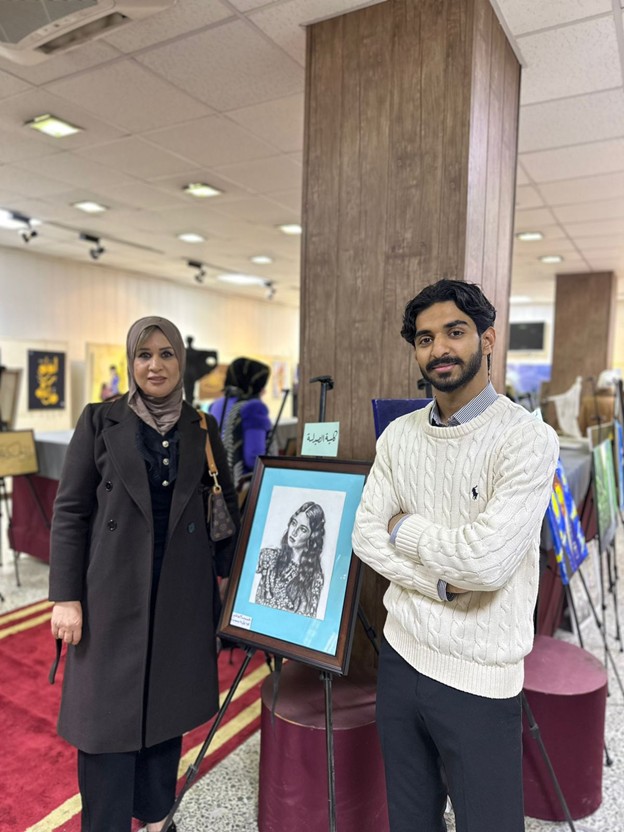 شارك عددٌ من طلبة كلية الصيدلة/جامعة بغداد في المعرض الفني التشكيلي لكليات جامعة بغداد، الذي افتتحه مدير قسم النشاطات الطلابية في الجامعة، الدكتور علي صادق المحترم، يوم الثلاثاء الموافق 23/12/2025، على قاعة معارض قسم النشاطات الطلابية.