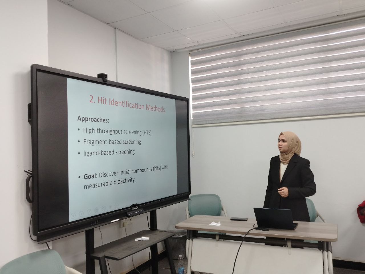 تضمنت الورشة عدة محاور منها التعريف بمفهوم التصميم العقلاني للدواء (Rational Drug Design)، وإجراء مقارنة بين النهج التقليدي والنهج العقلاني في إكتشاف الأدوية، وإستعراض المراحل الأساسية لإكتشاف وتطوير الدواء. كما تناولت الورشة دراسة العلاقة بين التركيب الكيميائي والفعالية الحيوية (SAR) ودورها في توجيه عملية تحسين الخصائص الدوائية للمركبات الفعالة.