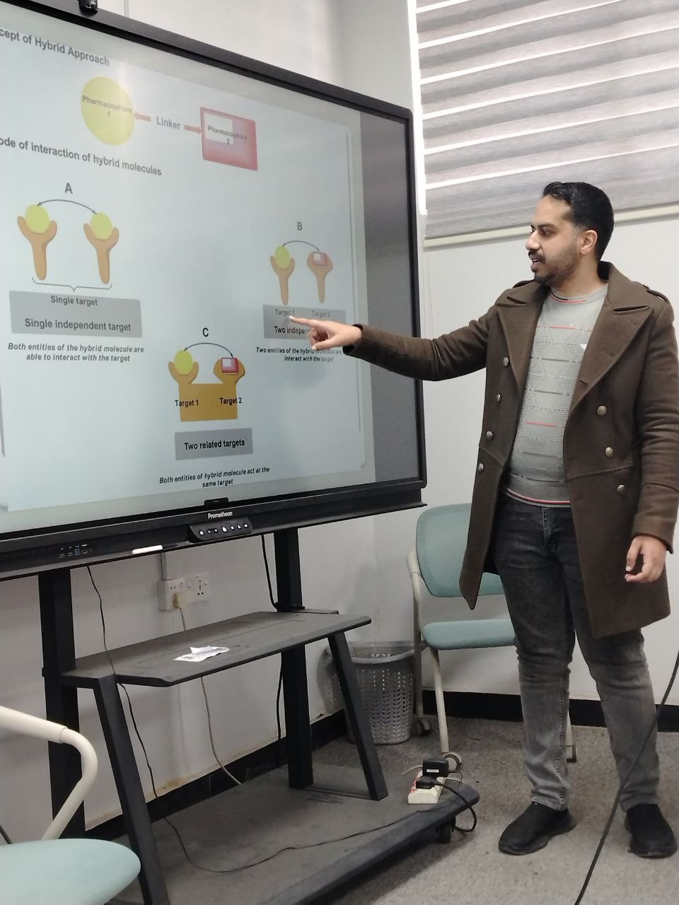 تضمنت الورشة عدة محاور منها التركيز على مبدأ الجزيئات المهجنة ودورها في تطوير العلاجات الدوائية الحديثة، فوائد الجزيئات المهجنة في تحسين الكفاءة العلاجية وتقليل الآثار الجانبية، كما إستعرضت مبدأ فرضية التهجين بوصفه أحد الأسس العلمية المهمة في تصميم الأدوية، آلية عمل فرضية التهجين وكيفية توظيفها في تطوير علاجات أكثر فاعلية، كما سلَّط الضوء على إسهام هذه المبادئ في تحسين الخصائص الدوائية للمركبات العلاجية، وإستُخدمت أمثلة علمية وتطبيقية متعددة لتوضيح المفاهيم وترسيخها لدى المشاركين. خلصت الورشة إلى إعتماد آلية عمل مزدوجة للجزيئات المهجنة، مع تأثير مؤازر يساهم في التغلب على مقاومة البكتيريا، وشملت الأمثلة تطبيقات على بعض الأدوية المضادة للسرطان، الأدوية المضادة للطفيليات، الأدوية المضادة للبكتيريا.