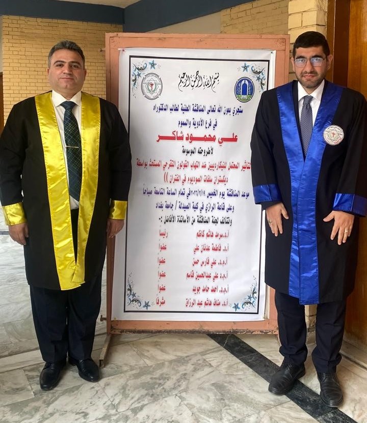 ناقشت كلية الصيدلة أطروحة الدكتوراه بعنوان “تقييم التأثير الوقائي المحتمل للنيكارديبين ضد التهاب القولون التقرحي المُستحث بدكستران كبريتات الصوديوم في الفئران مقارنةً بحمض 5-أمينوساليسيليك”، للطالب علي محمود شاكر ومشرفه الأستاذ الدكتور مناف هاشم عبد الرزاق زلزلة في فرع الأدوية والسموم.